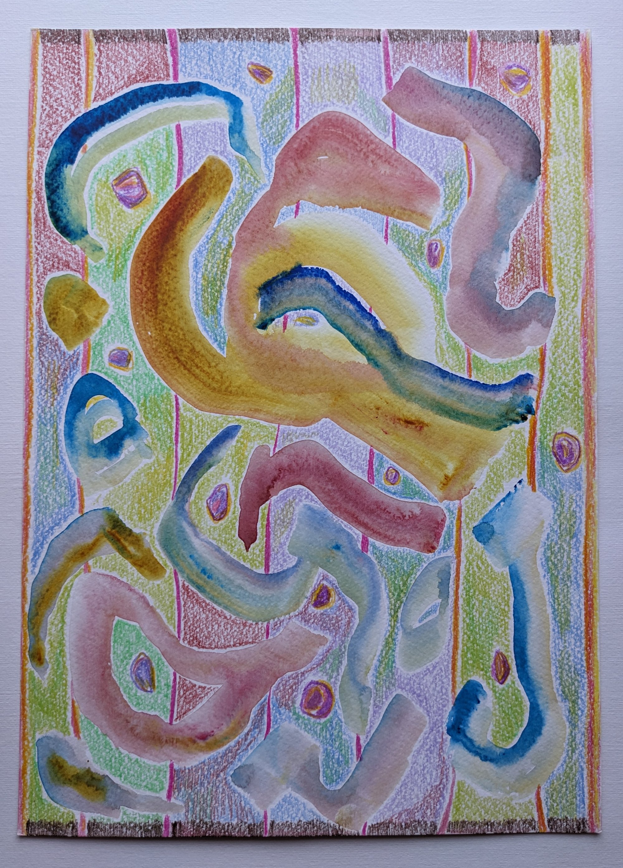 Watercolour and coloured pencil on paper, approx. 8x12inches (A4)
