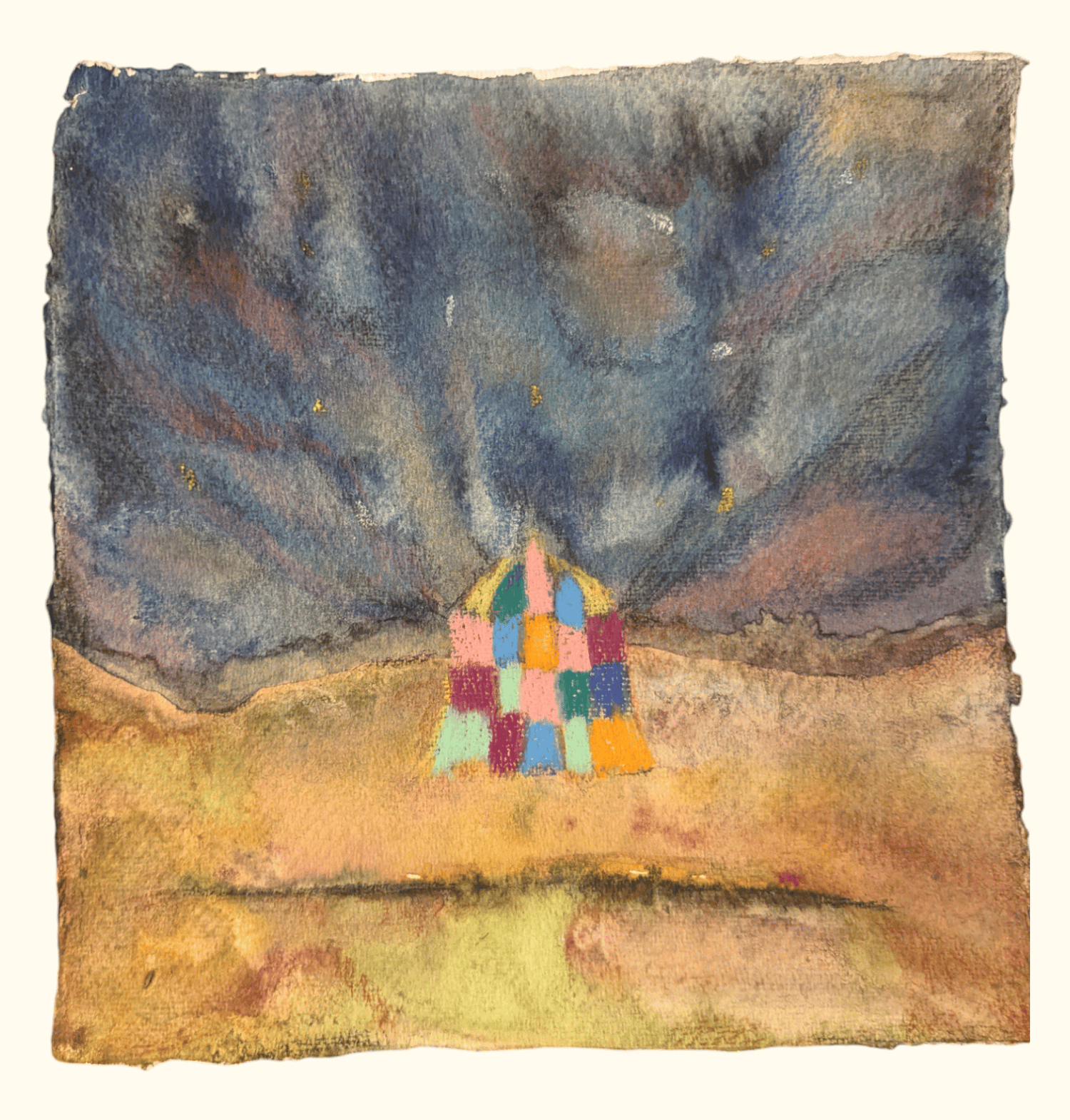 Ink and coloured pencil on khadi paper 15.2 x 15.2cm